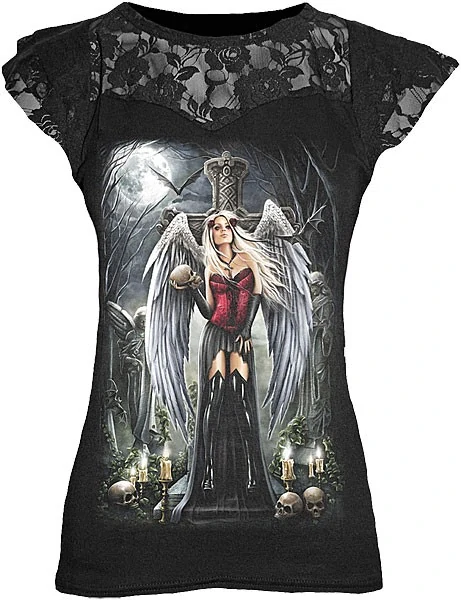 Tričko s krátkým rukávem a potiskem, s krajkou. Materiál: 95% cotton, 5% elastan