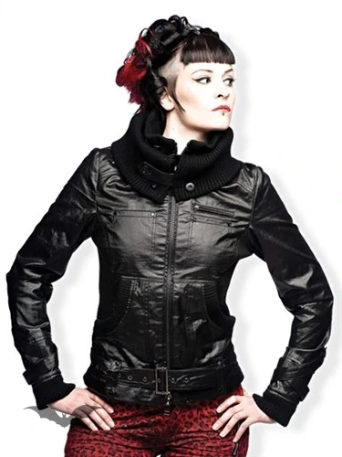 Dámská černá bunda s pleteným límcem. Materíál: 95% Cotton, 5% Lycra, imitace kůže celý popis