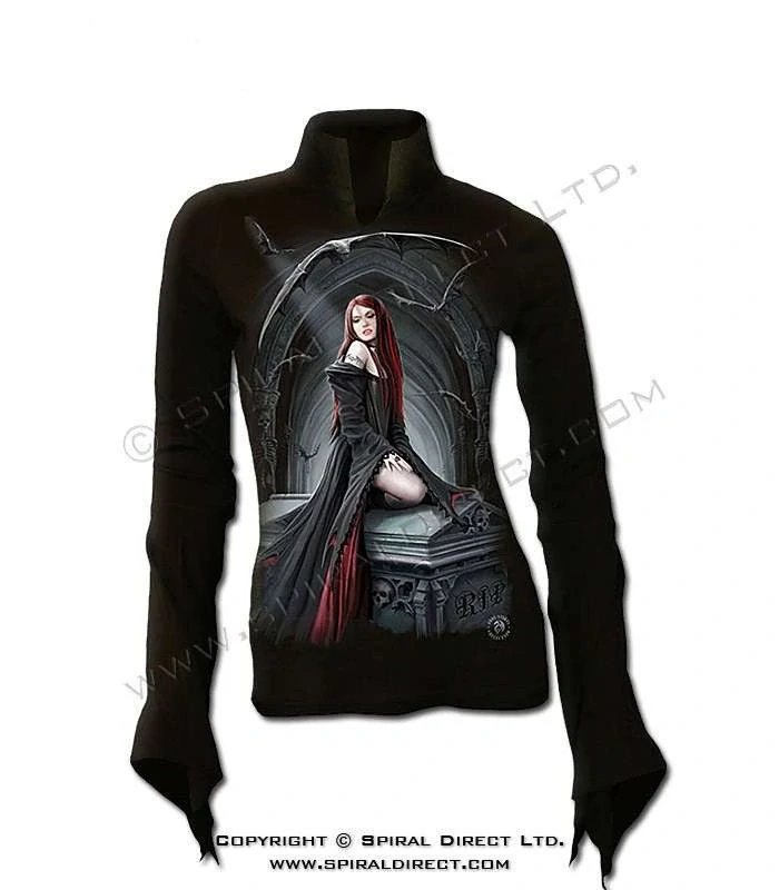 Dámské tričko s dlouhým rukávem a potiskem. Velikost S - XL. Materiál: 100% bavlna, upírka, upír