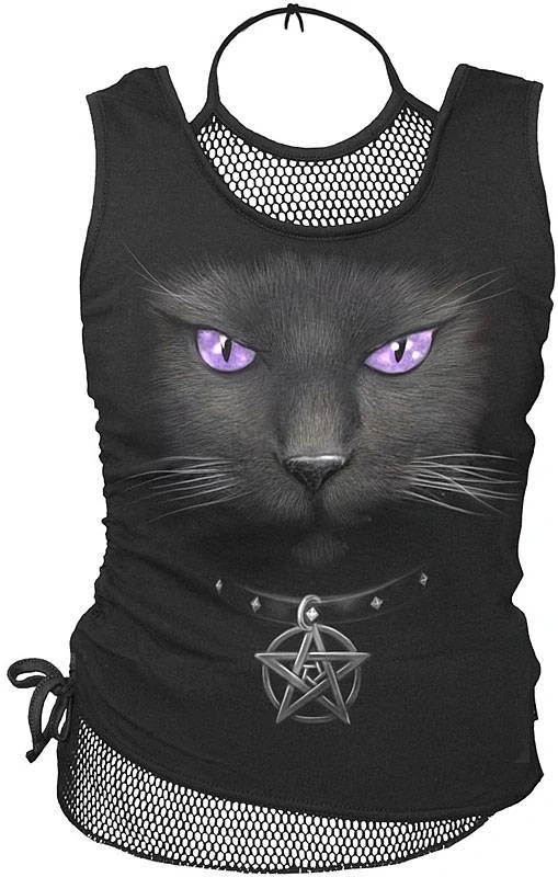 Kvalitní dámský top s potiskem kočky, velikost S – XL. Materiál: 100% bavlna, kočka, cat
