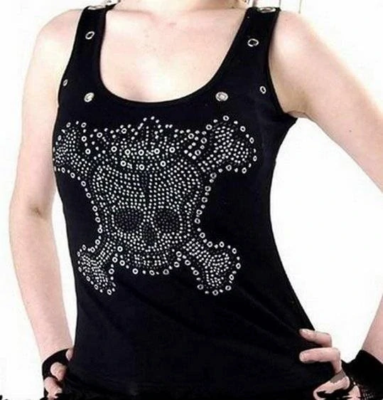 Kvalitní dámský top s potiskem ze štrasových kamínků, velikost S, M. Materiál: 100% bavlna, lebka, lebky