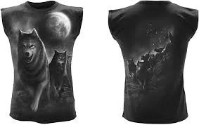 Tílko 100% bavlna, potisk zvířata, vlci, psi, měsíc, pes