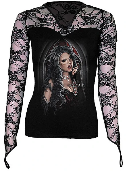 Tričko s dlouhým rukávem a potiskem, s krajkou. Materiál: 95% cotton, 5% elastan